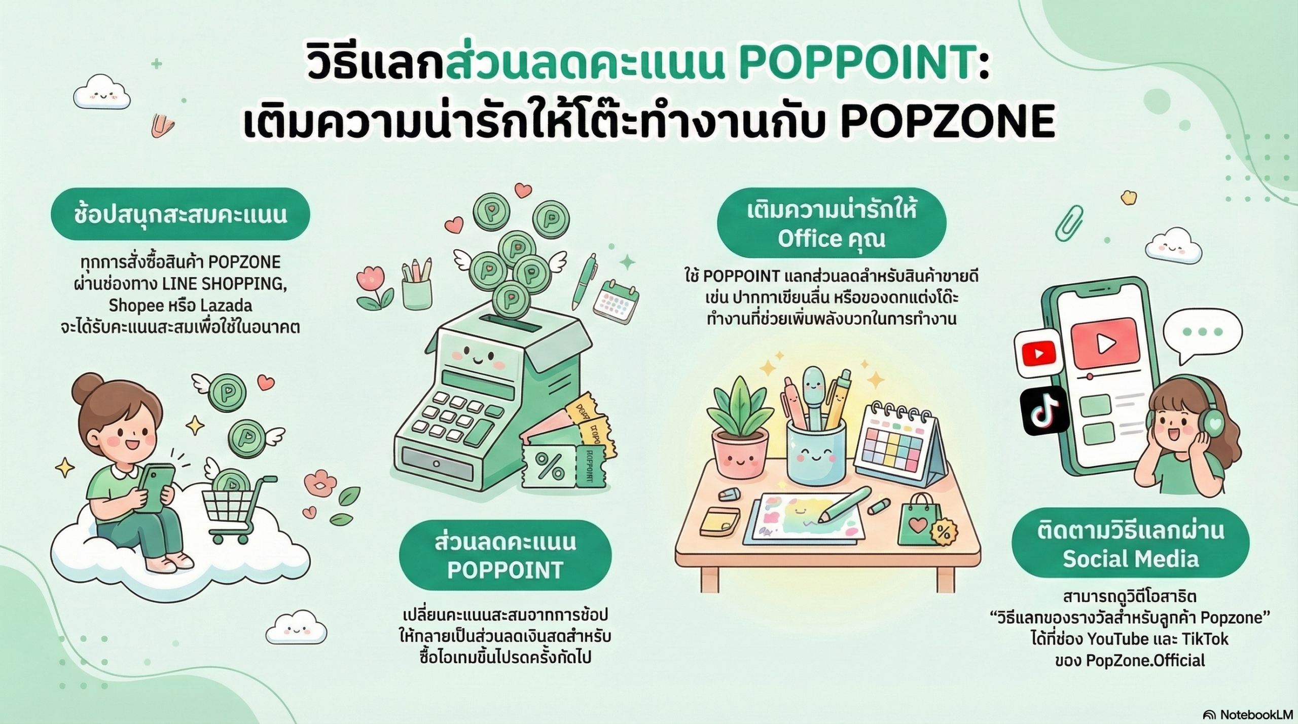 ใช้คะแนน POPPOINT 300 แลกคูปองส่วนลด 50 บาทใช้ได้ทั้งร้าน