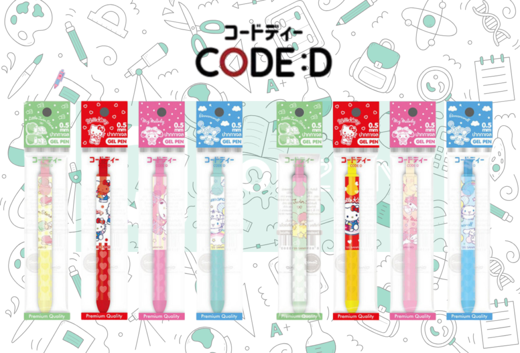 เติมความสดใสให้ทุกโน้ตด้วย ปากกาเจลมินิ CODE:D ลาย Sanrio! ปากกาเจลไซส์กะทัดรัดที่รวมความน่ารักของเหล่าตัวการ์ตูนขวัญใจมหาชนมาไว้บนด้ามปากกา ไม่ว่าจะเป็น Hello Kitty, My Melody หรือ Cinnamoroll มาในรูปแบบด้ามสั้นพกพาง่าย แต่ประสิทธิภาพการเขียนบอกเลยว่า “ลื่นปรื๊ด” เกินตัว!
